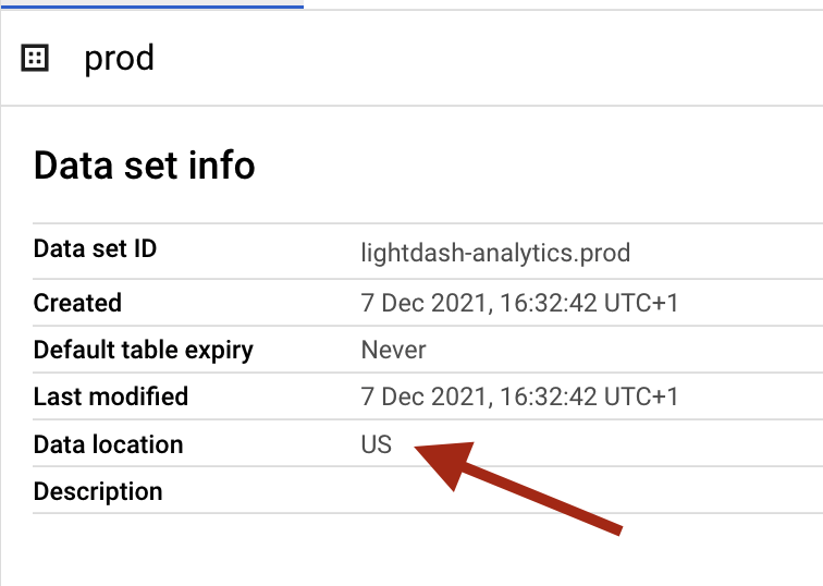 You can find the location of the dataset you’re using for your dbt project in your dbt profiles.yml file, or in your BigQuery console.