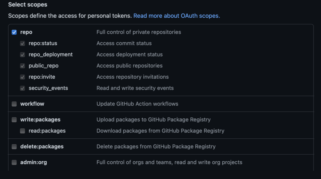 Project read and Repository read scope when you’re creating the token.
