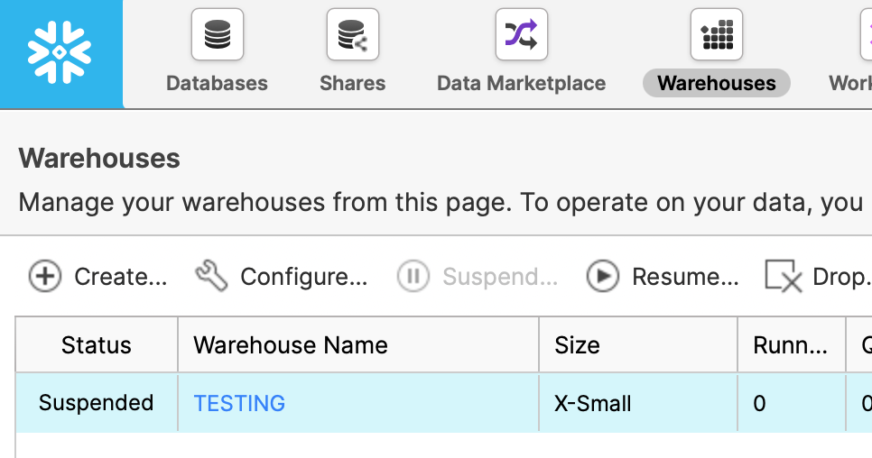 This is the name of the warehouse you would like to use for running queries. The specified user must be grantend access to use this warehouse. You can see al list of warehouses available in the snowflake console: